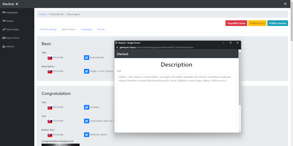 An Android game in the style of an escape room. The Android game is developed using C# and Unity3D technology, while the server is written in PHP and Symfony. The game features multilingual support.